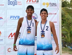 JUAN DOLIO, República Dominicana, 26 de abril de 2026.- Los nicaragüenses Justin Dinarte Barrios y Matthew Kempf ganaron la medalla de Bronce masculino en el Torneo Clasificatorio al Campeonato Mundial U18 de Voleibol de Playa de NORCECA, mientras que los estadounidense de Gavin Mortensen y Caden Phillips se adjudicaron la medalla de oro tras derrotar a los anfitriones Francisco De Jesús y Franklin Segura en sets corridos, 2-0 (21-18, 21-8), sobre la arena de Juan Dolio.